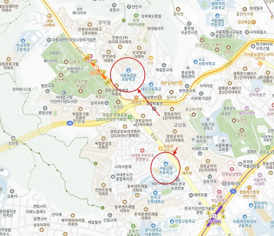 초등학교 배정단지가 아니라 금화초등학교가 아니라 독립문초등학교로 배정되어 등교를 해야 됩니다.