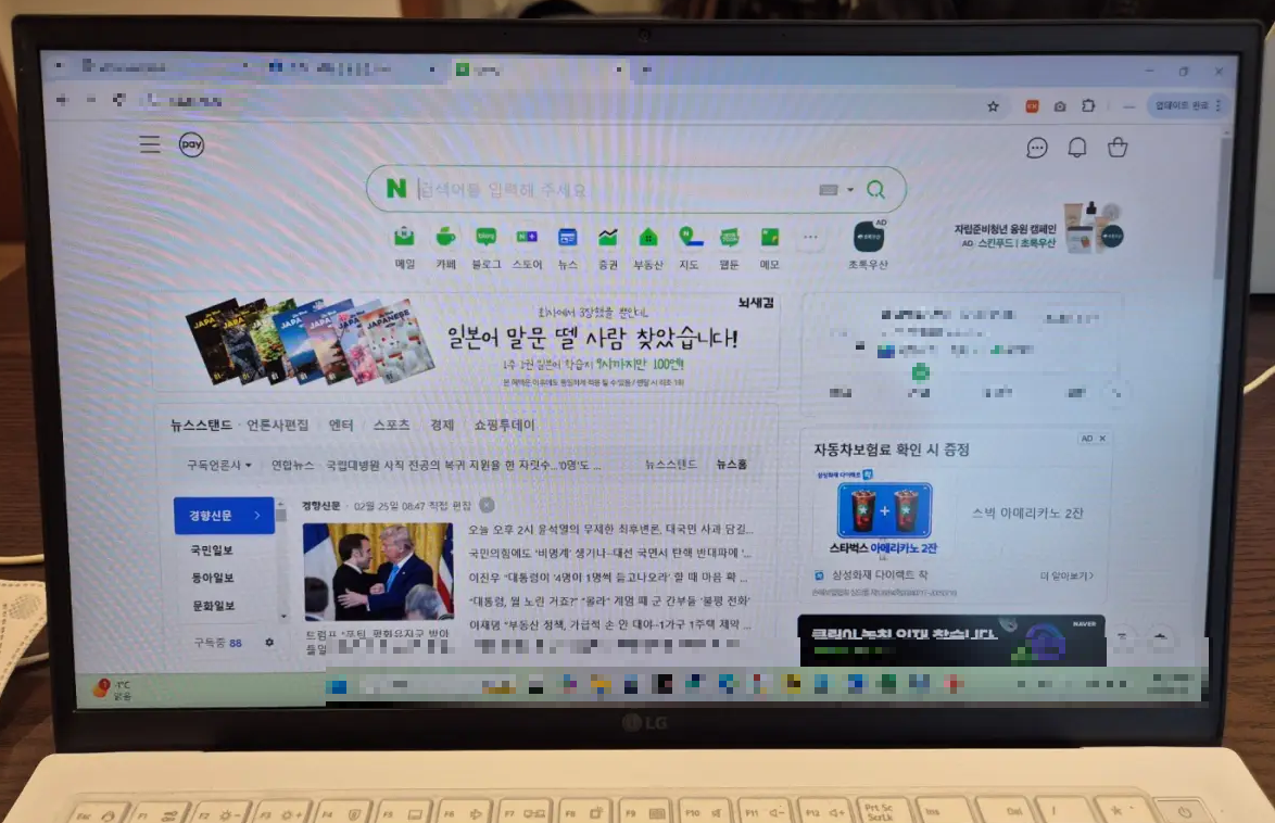 렌탈 노트북 LG그램 화면