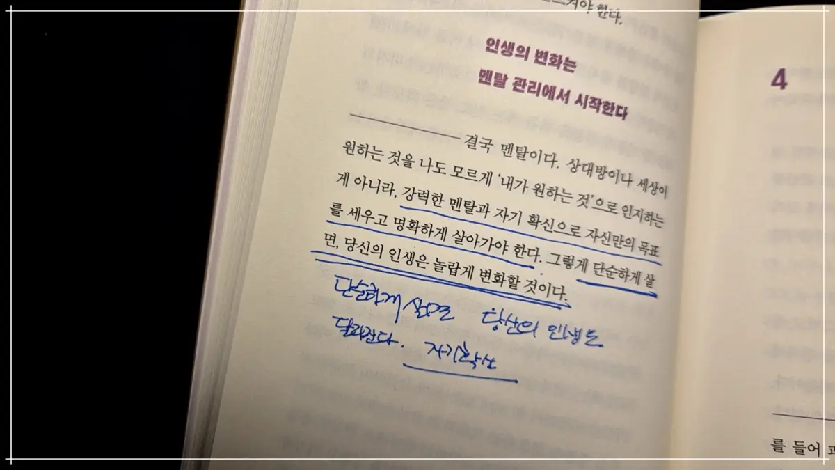 단순한 삶이 당신의 인생을 바꾼다. 멘탈을 바꿔야 인생이 바뀐다.