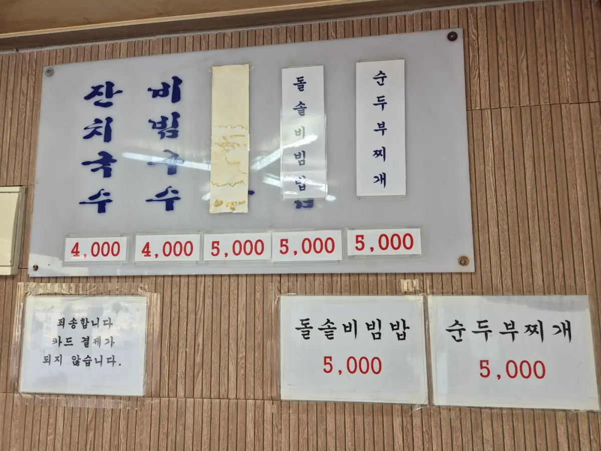 최고의 가격 돌솥비빔밥, 순두부찌개 메뉴 자체가 5천 원입니다. 정말 착한 가격아닌가요? 요즘 한 끼 식사를 5천 원에 할 수 있는 곳이 있는지 알려주세요~