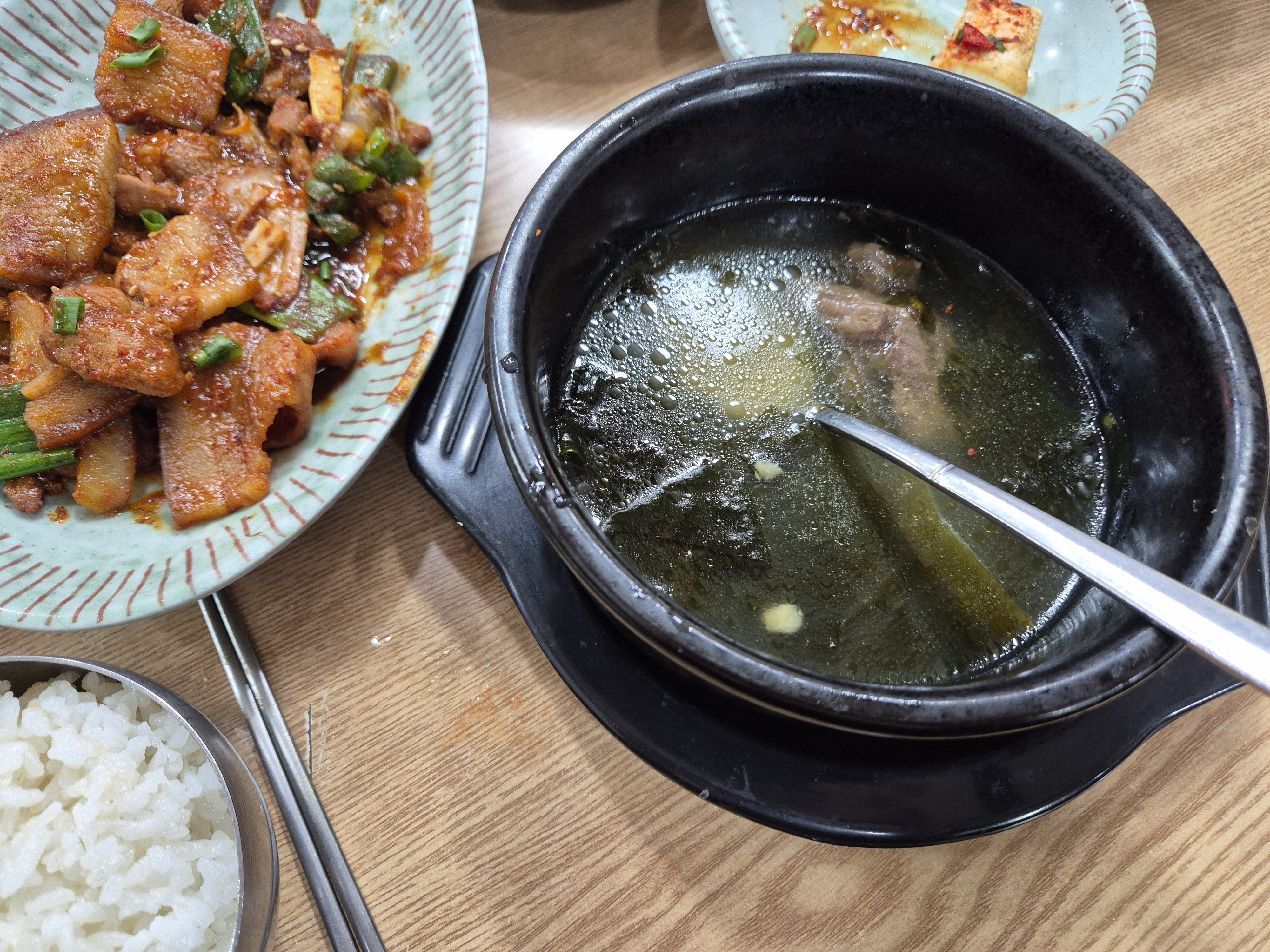 저는 집밥이 그리울 때가 있는데 특정한 날이 아닌데 미역국이 나오면 그냥 괜히 생일인 거 같고 해서 기분이 좋아지더라고요. 오늘은 생일은 아니지만 미역국이 나와 좀 더 기분이 좋았습니다. 요긴 사장님 맘대로 올 때마다 조금씩 기본으로 주시는 상차림이 바뀌어 너무 좋았습니다.