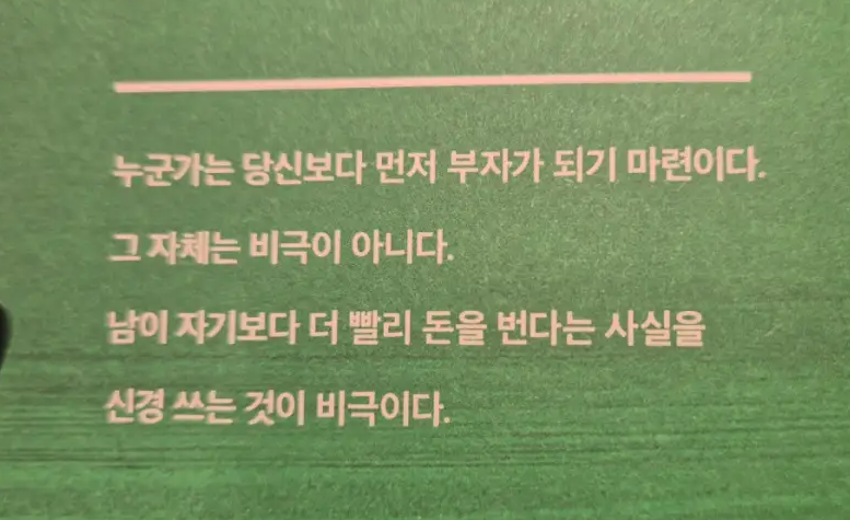 "남이 자기보다 빨리 돈을 번다는 사실을 신경 쓰는 것이 비극이다."