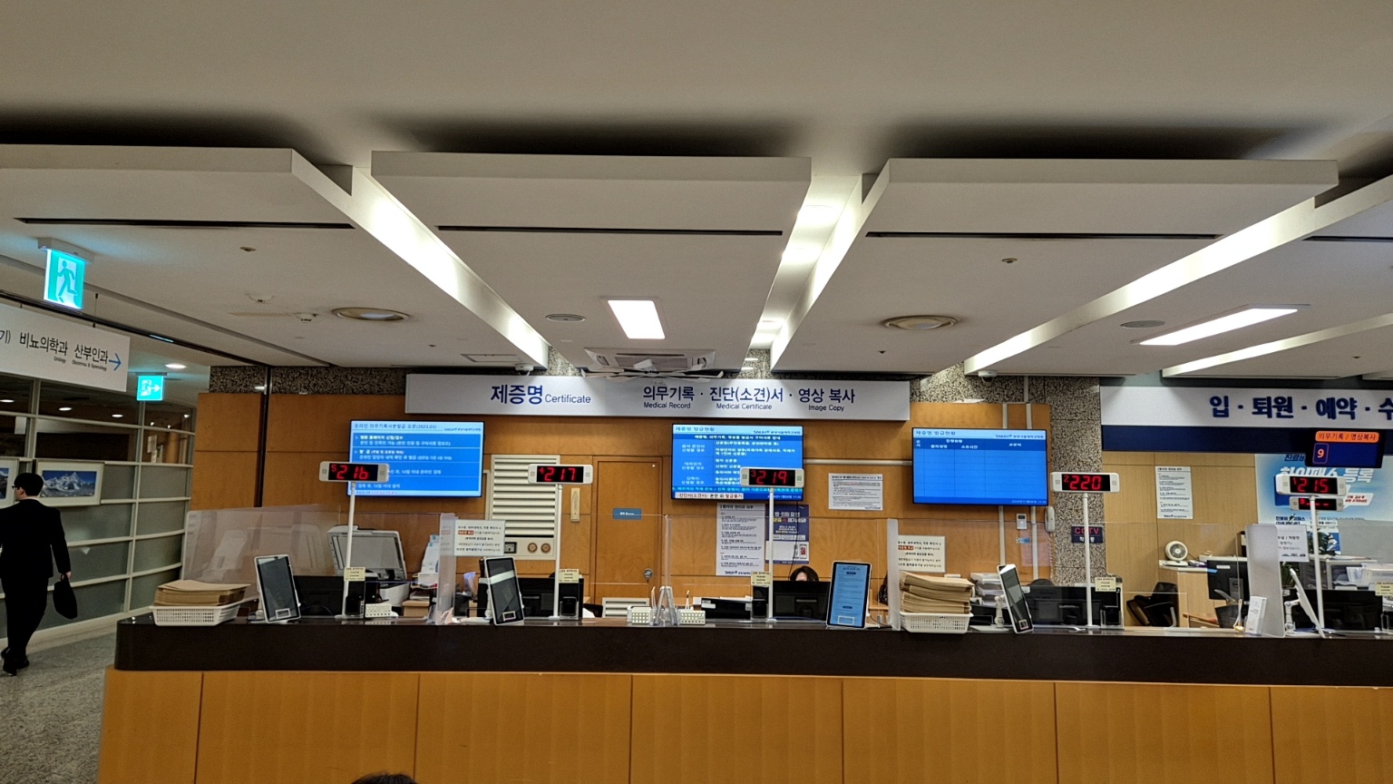 안내표시판에는 보험 등 증명서 발급 관련 창구가 있습니다.