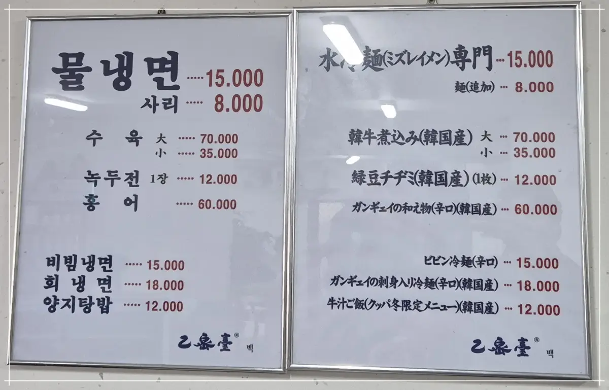 을밀대 본점에서 메뉴는 정말 간단합니다.