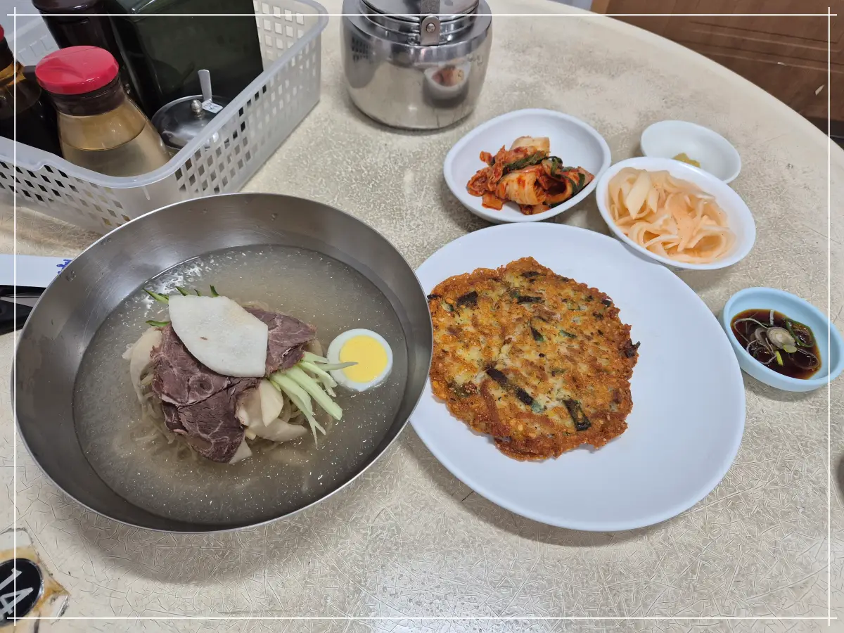 냉면의 담백한 맛도 최고이지만 녹두전의 바삭하고 고소한 맛 겉은 바삭하고 속은 촉촉한 맛 아시죠?