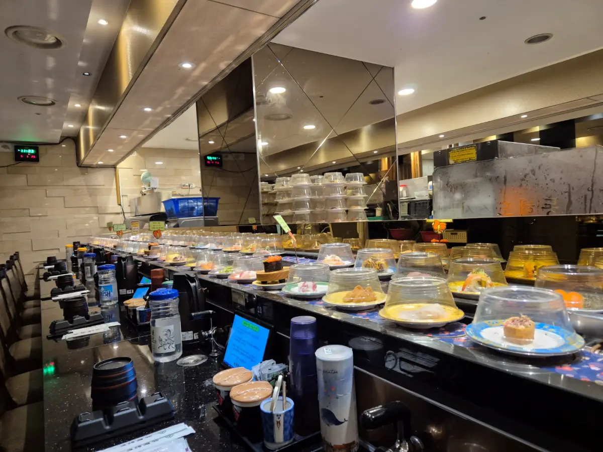 이번에 동료랑 둘이 다녀왔는데, 점심시간에는 사람들이 많아 조금 일직 도착하니까 웨이팅 없이 바로 들어갈 수 있어 좋았습니다. 내부는 깔끔하고 회전초밥답게 바 형태 좌석도 많아서 혼밥도 가능