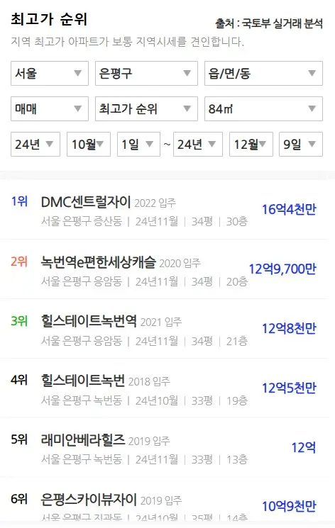 은평구 대장 아파트 DMC센트럴자이, 그다음으로 인기 있는 단지는?