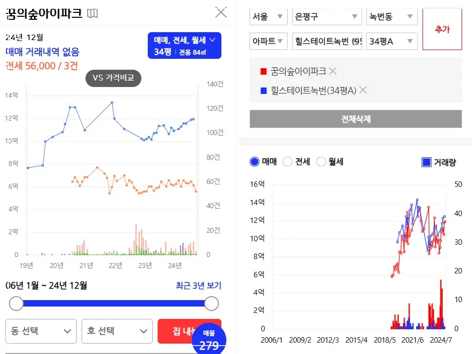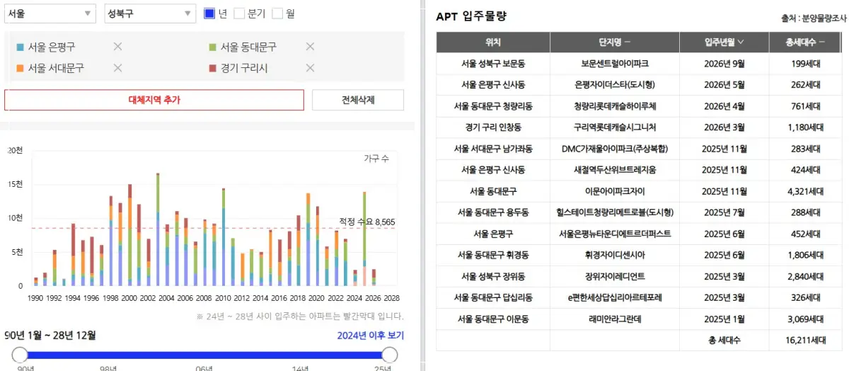 서울 성북구 아파트 VS 서울 은평구 아파트