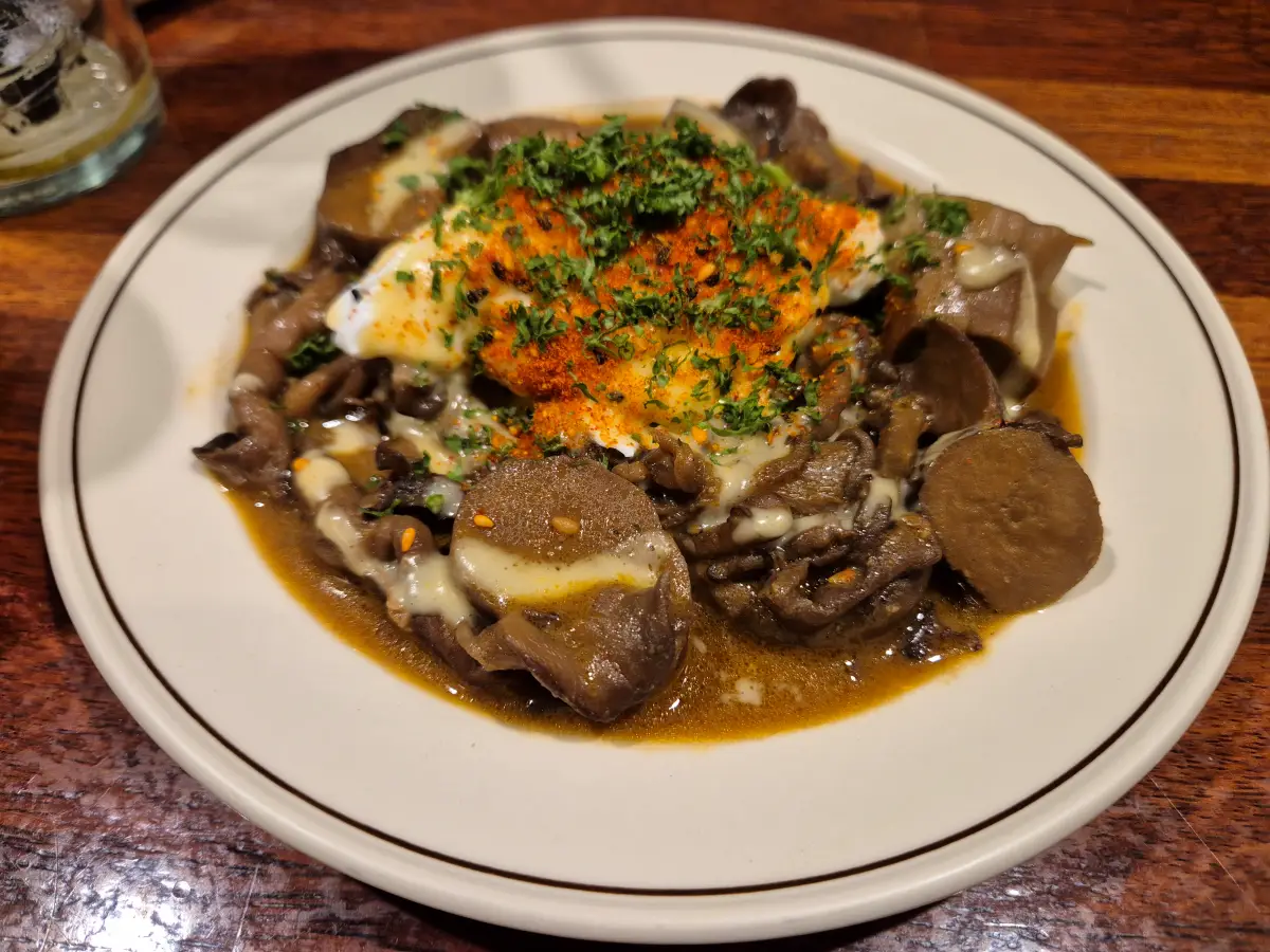 7,800 모듬 버섯 콩피, 미소 버터, 수란, 옥수수 퓨레, 파슬리