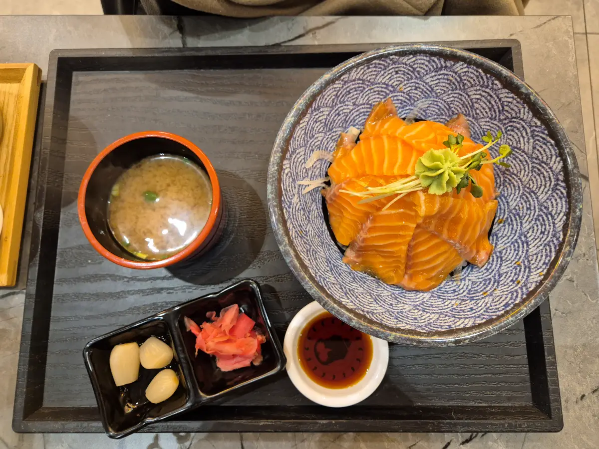 조금 비싼거 같은데... 하는 순간 맛도 맛이지만 연어의 크기가 너무 좋았습니다. 그리고 계단처럼 올라가는 비주얼이 연인이 데이트하시면서 인스타에 올리기도 좋아 보여요. 장국이나 사이드는 크게 기성품으로 사용하시는 것 같습니다.
