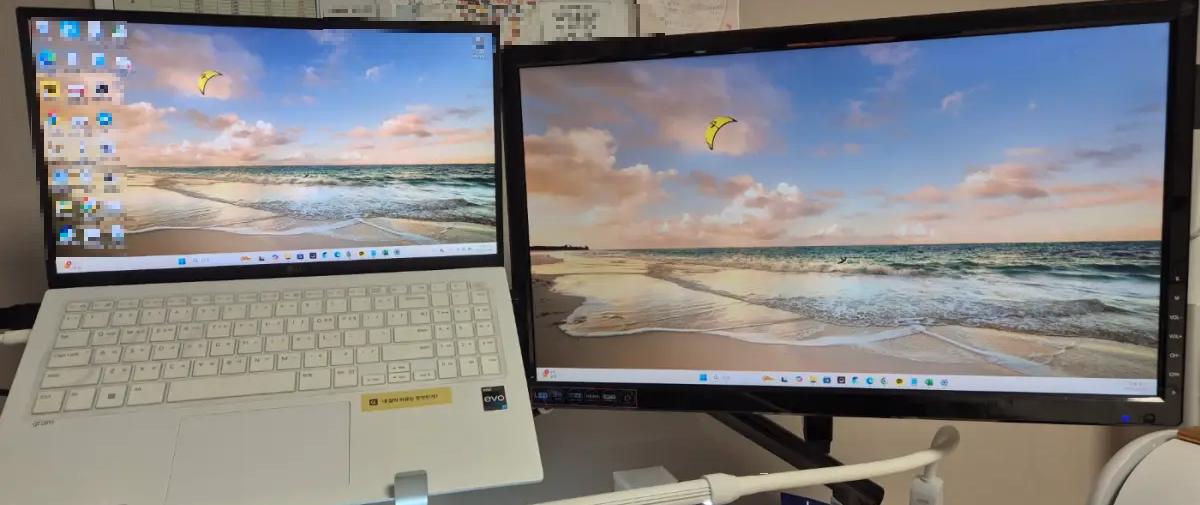 요즘에는 모니터 자체가 와이드도 나오지만 노트북을 사용하는 분들은 연결이 필요합니다.