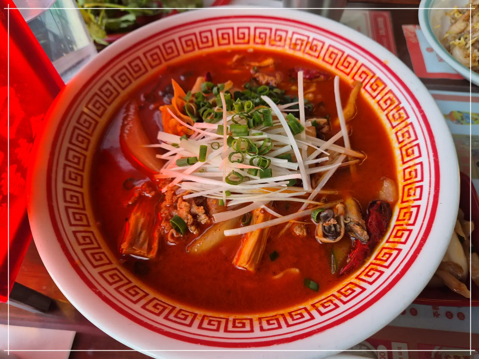 요것도 맵게 생겼지만 그렇게 맵지 않아요. 고기도 부드럽고 면도 특이합니다. 일반적으로 제가 먹어봤던 넙적 당면처럼 넙은데 그렇게 땡땡하거나 쫄긴하진 않아요. 푸주와 야채도 모두 궁함이 잘 맞아요. 꼭 드셔보세요.