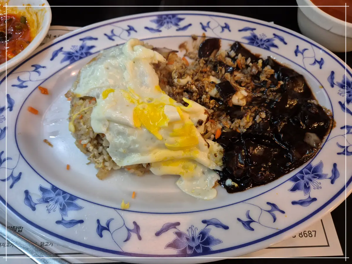 계란과 짜장 우리가 알고 있는 볶음밥이지만 조금 느끼하게 생각이 들때 짬뽕국물을 드시면 그 맛이 사라지긴 하네요.