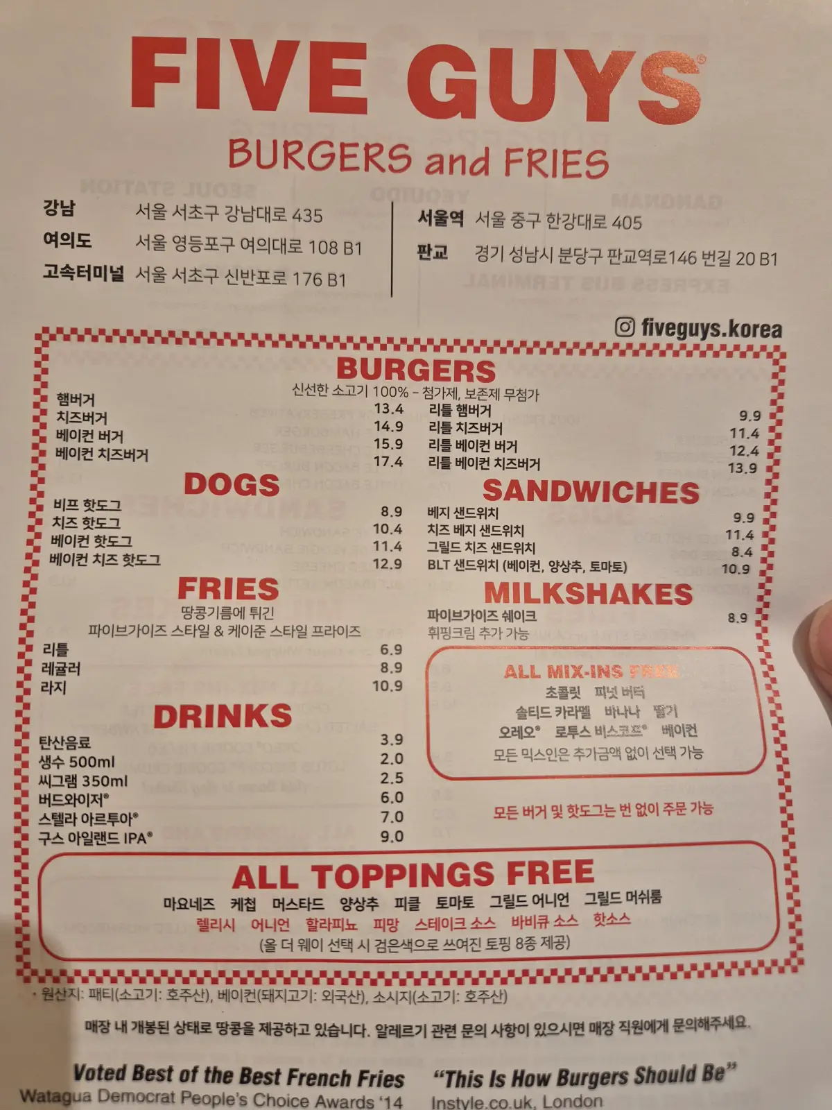 파이브가이즈 메뉴 주문 그리고 치즈버거 솔직 리뷰! 수제버거 끝판왕 맞을까?