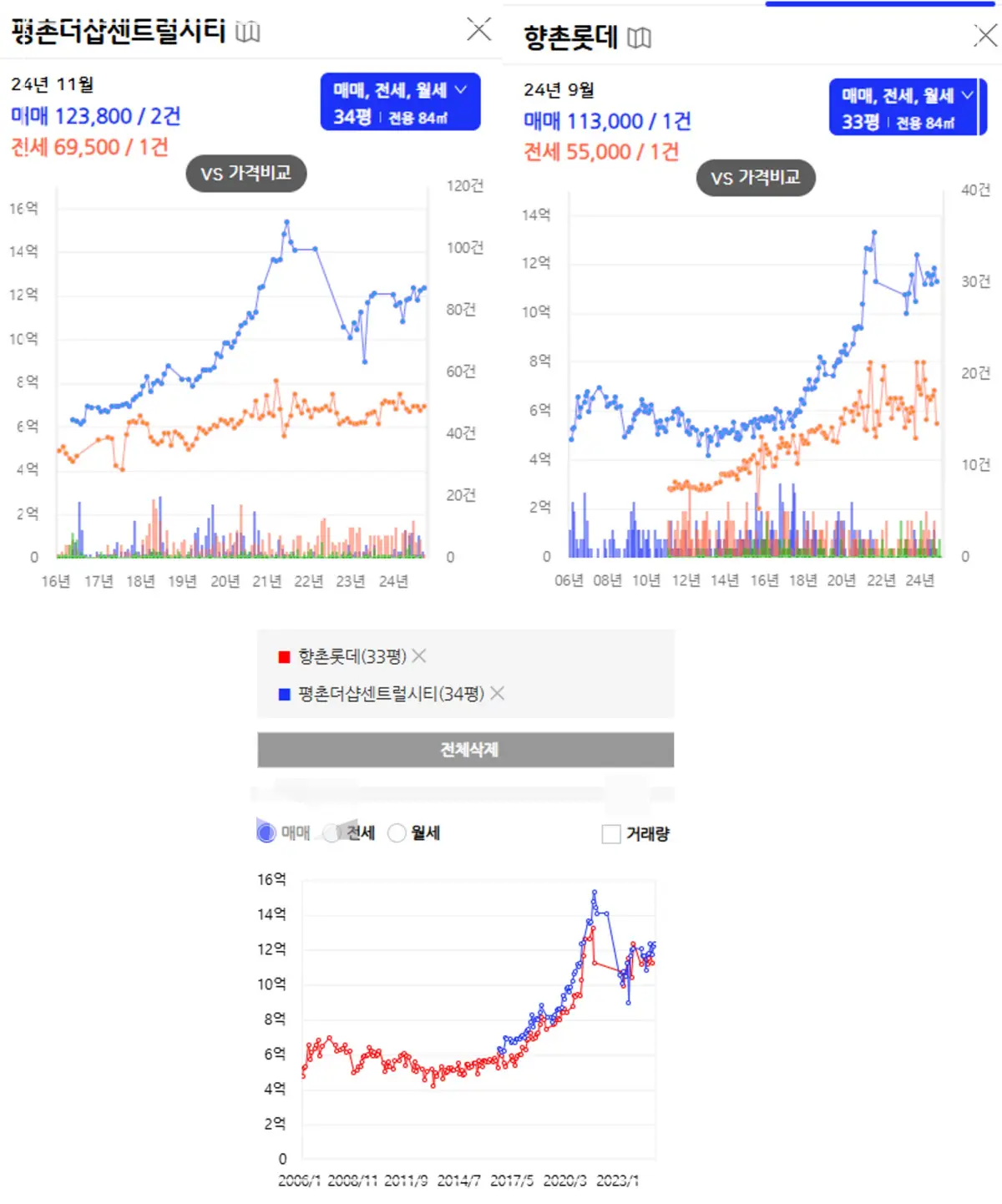 신축이라고 모두 사람들이 좋아하는 것은 아니네요.  향촌롯데의 장점이 무엇이길래 이렇게 23년 차이가 나도 비슷한 가격을 유지하고 있는 참 궁금합니다.