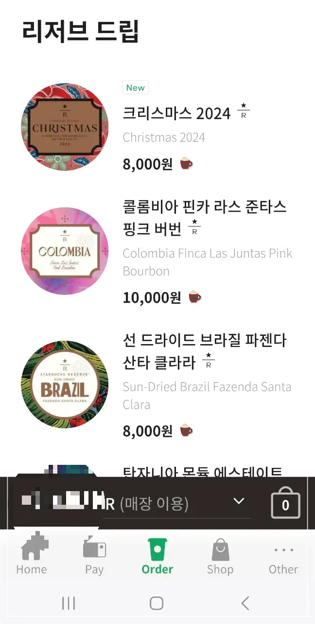 리저브 매장에는 일반매장보다 비싸지만 자신이 원두와 내리는 방식을 선택해서 주문을 할 수 있습니다.
