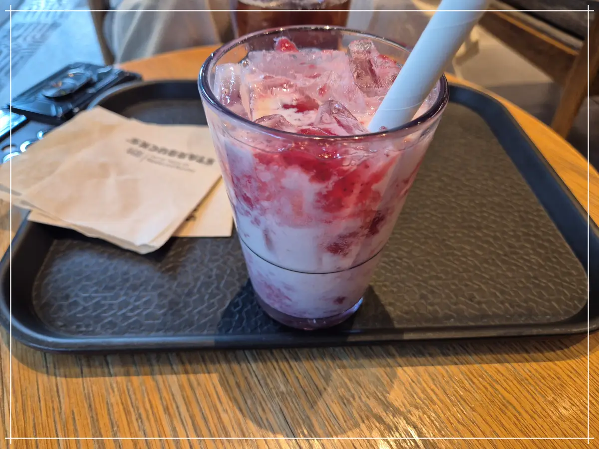 오늘은 제가 좋아하는 일반메뉴인 딸기 라테를 먹었어요. 프리퀀시도 정립하고 좋네요.